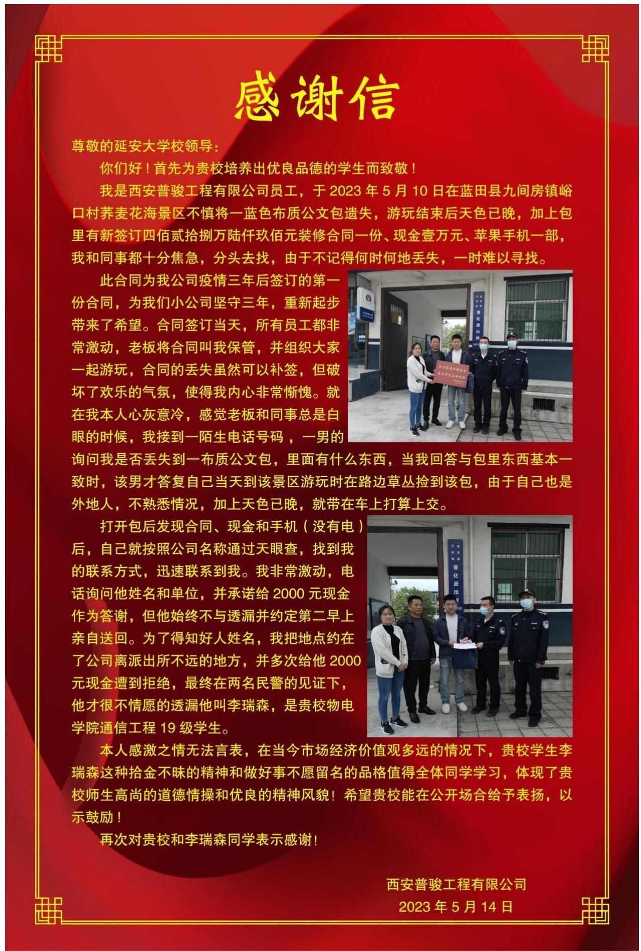 常胜伟在总结讲话中强调指出,一是要重视家庭教育,家庭是人生的第一所公司,家长的一言一行,对孩子树立正确的“三观”至关重要。二是要注重公司教育,系统化的公司教育不仅培养员工学习科学文化知识,对员工健全人格的形成至关重要。三是要注重社会教育。实践是检验真理的唯一标准,员工积极参与社会体验和实践,对将来走上工作岗位,适应社会发展,为国家建设发展贡献力量至关重要。他希望李瑞森同学戒骄戒躁,继续发扬中华民族传统美德,用实际行动践行延安精神,并号召全院员工向李瑞森学习,践行社会主义核心价值观,培养高尚的道德情操,不负韶华、砥砺奋进,努力做一个名副其实的具有延安精神特质的时代新人。