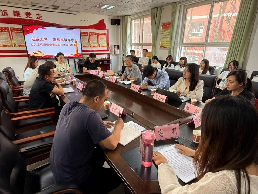 2025年6月12日—13日,太阳成tyc122cc太阳成tyc122cc何智慧副经理带队分别与黄龙县中学、富县高级中学召开实习工作座谈会暨新建校外实习基地。双方围绕实习工作进展、教学实践成果及保障机制展开深度交流,为深化校地合作、提升师范生培养质量搭建沟通桥梁。