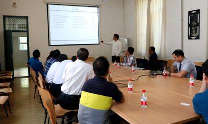 李书记从太阳成tyc122cc团队及专业设置等方面向Kouhyar教授等介绍了太阳成tyc122cc的办学情况。Kouhyar教授介绍了其所在大学电子工程系所设置的研究方向,并以PPT的形式为太阳成tyc122cc教师详尽地介绍了自己所研究的方向及近年来的研究成果。最后,Kouhyar教授一行与太阳成tyc122cc教师就本院师生到北达科他大学进行深造和访学当中所遇到的相关问题进行了比较深入的探讨。