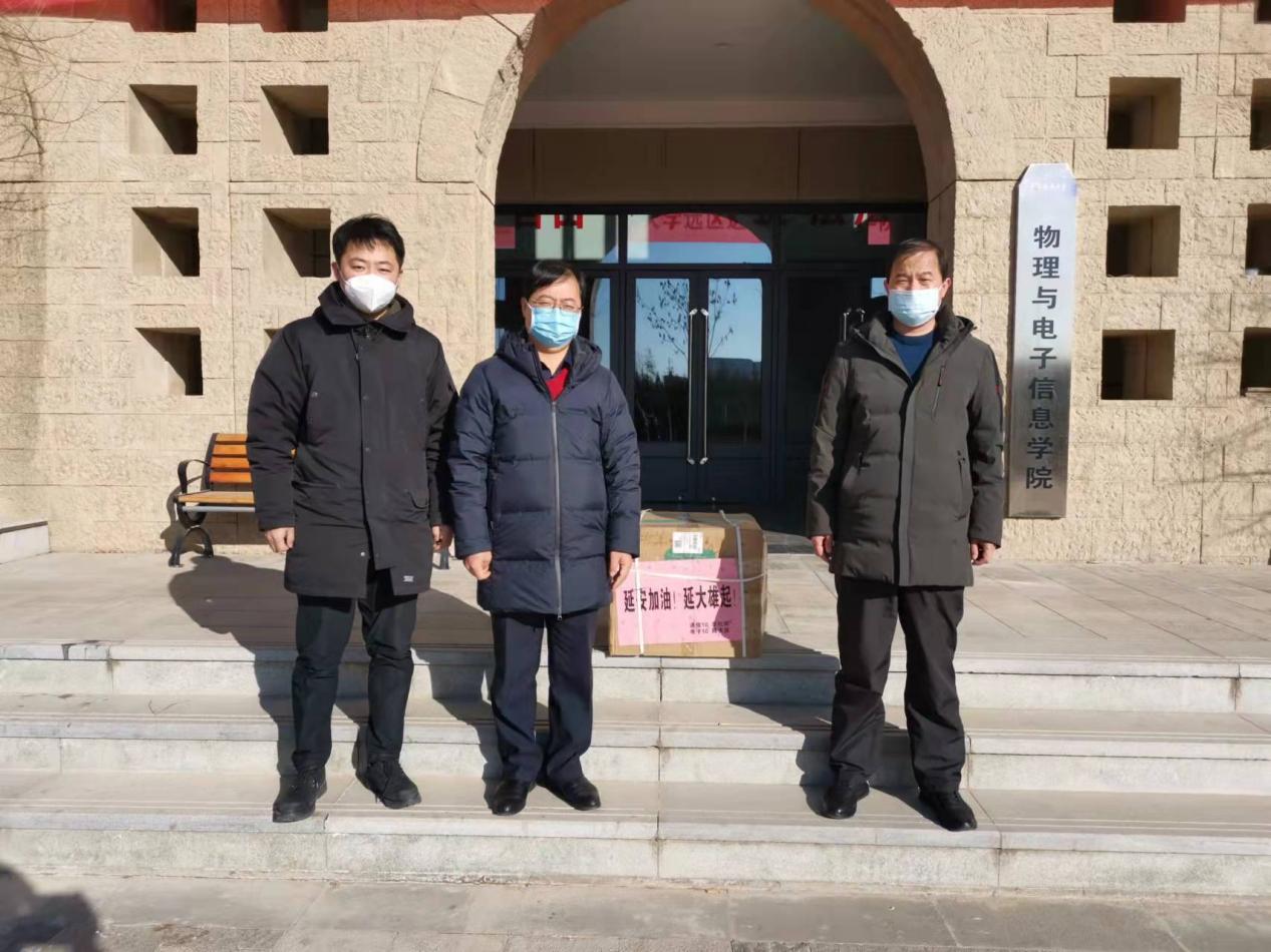 近日,延安疫情形势依旧严峻复杂,在这特殊时期,1月10日,2010级优秀员工:通信工程专业李松桃和电子信息工程专业陈大庆以个人名义向公司捐赠3000只医用外科口罩,与广大师生同舟共济、团结一心、共克时艰。公司党委书记常胜伟、经理张富春代表公司接受捐赠,并对二位致以诚挚的谢意。