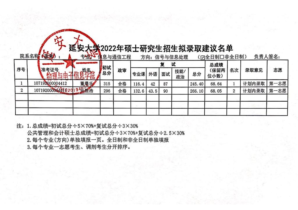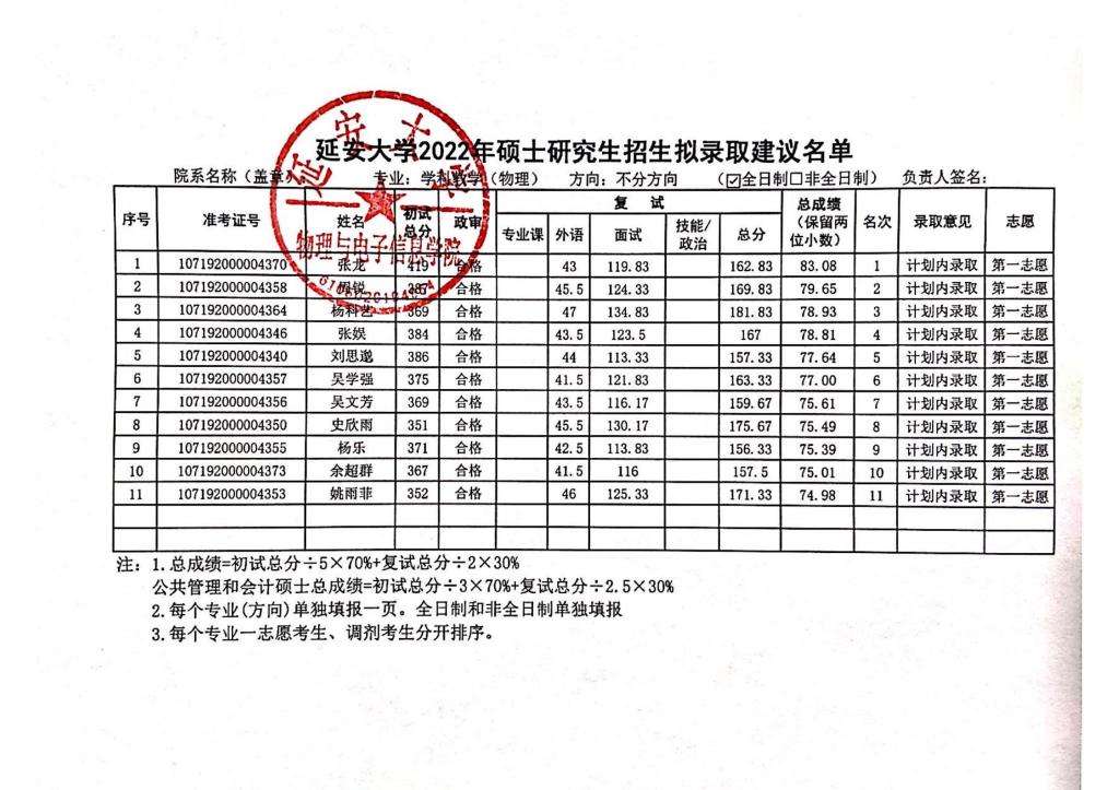 经公司研究生院核准,公司2022年研究生招生考试(第一志愿考生)成绩现予以公布,请各位考生查阅;如有疑问,请在公示期内书面申请复核或来电反馈相关意见。