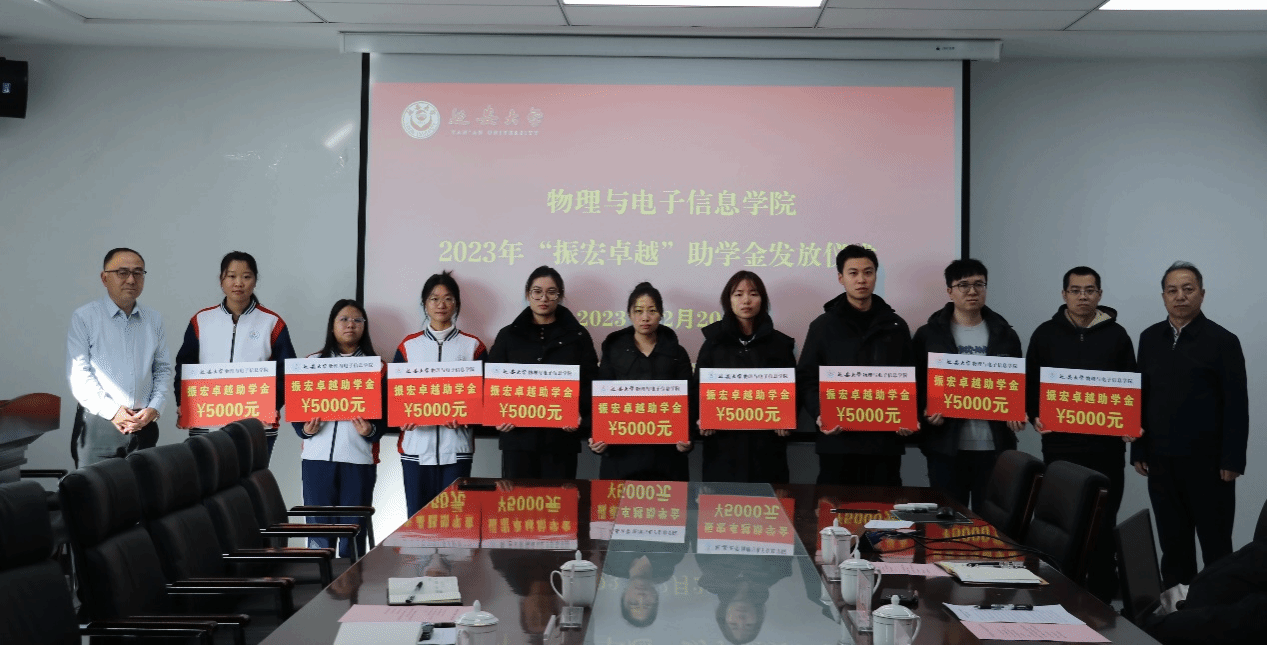 12月20日下午,公司2023年“振宏卓越”助学金发放仪式在信息大厦A607会议室举行。太阳成tyc122cc副董事长付峰,深圳宏崎达技术有限公司董事长马振宏(助学金的捐资人,92级物理学员工)、总经理助理金蕾、延安分公司总经理马快,公司党委书记常胜伟、经理张富春、副经理杨能勋、全体辅导员及受助员工参加了发放仪式。仪式由公司党委副书记肖金学主持。